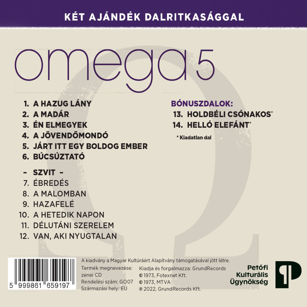 Az Omega ötödik nagylemeze igazi mestermunka. Az albumon az együttes az Élő Omegán elkezdett hard rockos hangzást fejlesztette tovább és több szempontból is úttörőnek számít a magyarországi rockzenében. Az 1973 nyarán megjelent lemezen használtak ugyanis először szintetizátort (A madár című dal), a hattételes Szvit kompozíció pedig az első olyan hazai progresszív rock felvétel, amit rockegyüttes és szimfonikus zenekar közösen készített. Az albumon egy csúcsformában játszó zenekart hallunk. A lemezen mindenki dalszerzői tehetségének legjavát nyújtja! A lemez örökérvényűségéhez Sülyi Péter verseinek zavarba ejtően gyönyörű gondolatisága, tisztasága mindenképp hozzájárul.